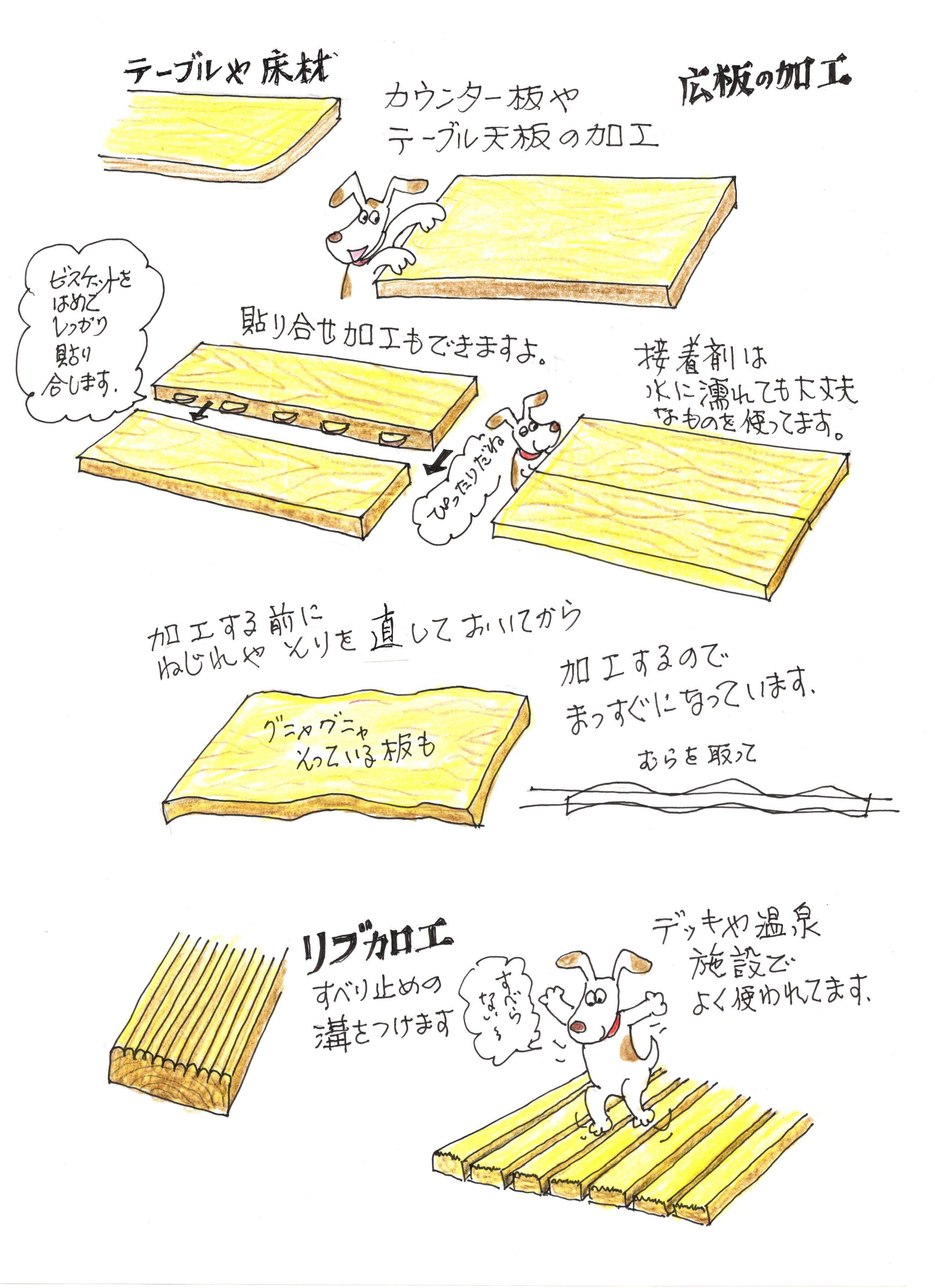 木工所と言っても、テーブル、椅子や棚などは製作していません。弊社は、お客様の注文に沿って、木材を削り、仕上げて、建築で使用する枠材やフローリングの板等を作っています。一般の方からの需要はあまりありませんが、工務店様や建材店様からの木材の加工を約80年間、続けてきました。